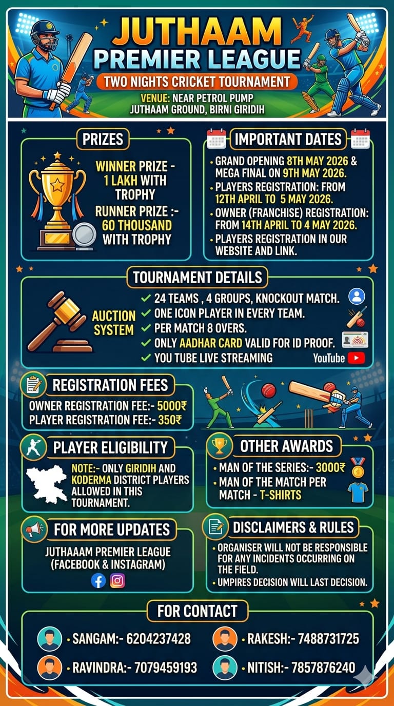 JUTHAAAM PREMIER LEAGUE came in its existance in 2024 with an aim to take cricket on its top.In modern life sports has been part of the life style for every age category. Format like JPL has been emerged as an money earning platform withentertainment in bulk.